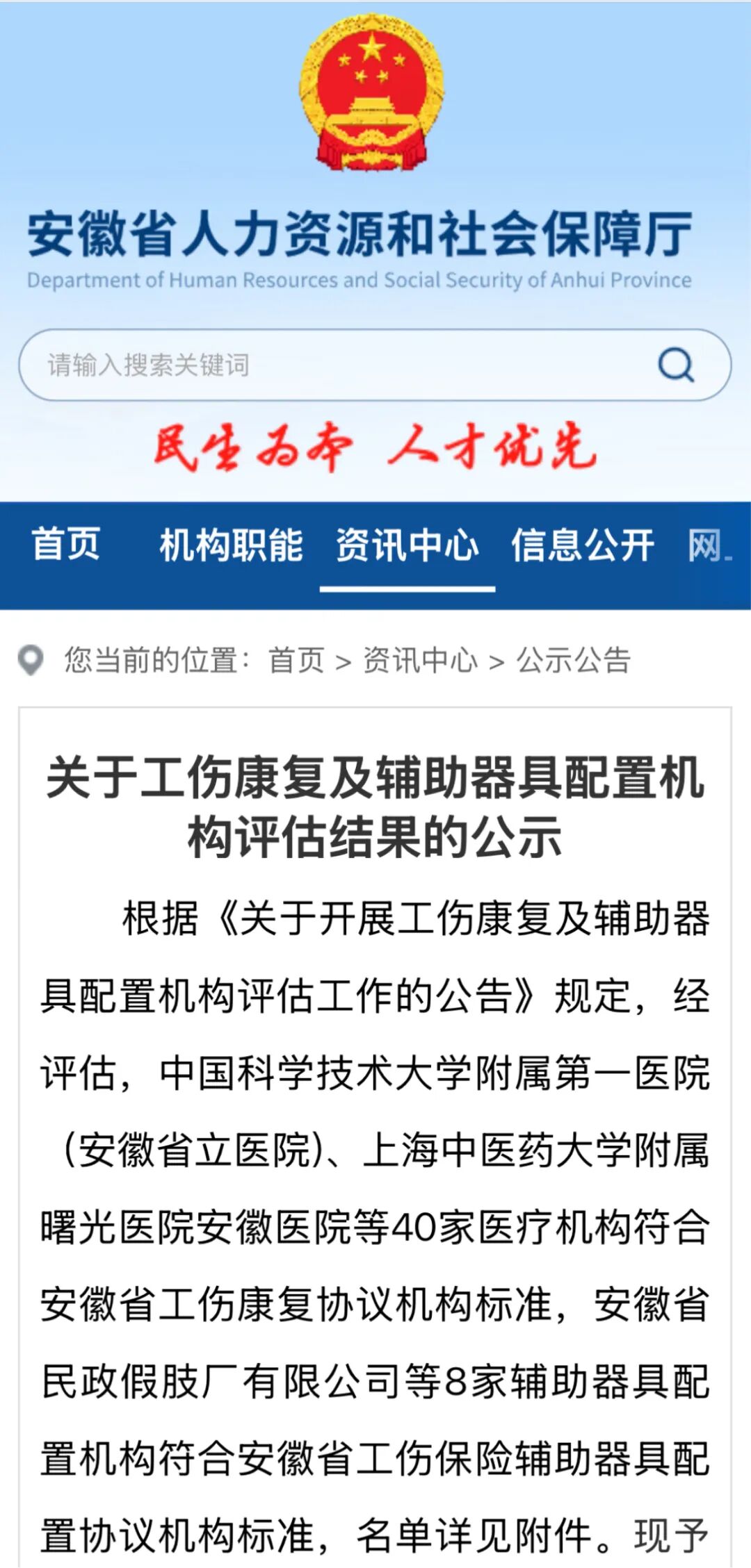 - 我院被确定为马鞍山市工伤康复定点医疗机构 2026-01-23