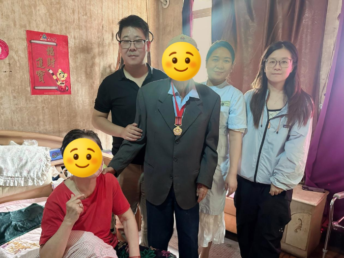 诊疗期间,医护人员偶然得知奶奶的老伴是一位抗美援朝老兵,为国家和人民作出过重要贡献。为向老兵致敬,也为持续关注奶奶出院后的康复情况,出院后不久,呼吸与危重症医学科主任夏静、护士长胡宽丽与党群工作部工作人员一同前往徐奶奶家中,开展探望慰问活动。慰问中,大家与两位老人亲切交谈,详细了解奶奶的康复状况和老兵的生活起居,为他们送去慰问品,并对老兵在抗美援朝战争中展现的英勇无畏精神表达崇高敬意。抗美援朝老兵及家属纷纷为医护人员的敬业精神点赞,现场洋溢着浓浓的医患温情。
