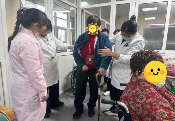 活动现场,康复科毕主任带领团队成员,耐心细致地为每一位老人进行身体检查。从测量血压、心率,到询问既往病史、日常饮食作息,毕主任都逐一叮嘱、详细记录。针对部分高龄、失能老人的身体状况,她结合检查结果,量身定制了个性化康复训练计划,并现场示范康复动作,指导老人和护理人员正确操作,帮助老人改善肢体功能、提升生活质量。