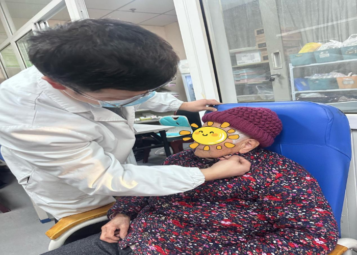 另一边,康复科医生们则为有需求的老人开展了针灸等中医特色治疗服务。面对老人及家属提出的关节疼痛、肢体麻木等问题,医生们精准定位穴位,娴熟运用针灸疗法为老人缓解不适。治疗过程中,医生还不断询问老人的感受,讲解中医养生知识和日常护理注意事项,让老人们在接受治疗的同时,学到实用的健康管理技巧。