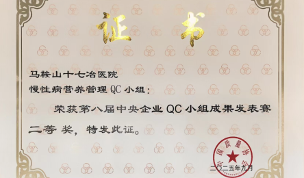 马鞍山十七冶医院QC成果在第八届中央企业QC小组成果发表赛中斩获二等奖